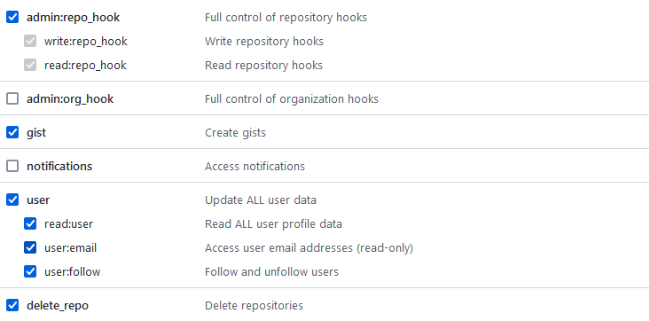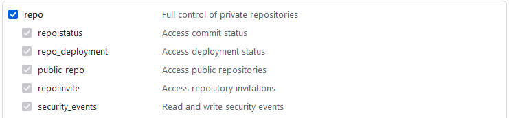 터미널에서 관리해줄 것아기 때문에 repo에 관한 권한을 모두 체크 했습니다.