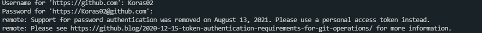 개인 레포를 생성하고 push 를 하려고 했더니 이런 에러 메시지가 떴다.이유는 8월 13일 부로 push, clone, pull 시 비밀번호 대신 토큰을 사용하게 변경 되었기 때문.Github 에서 토큰을 생성하는 방법은