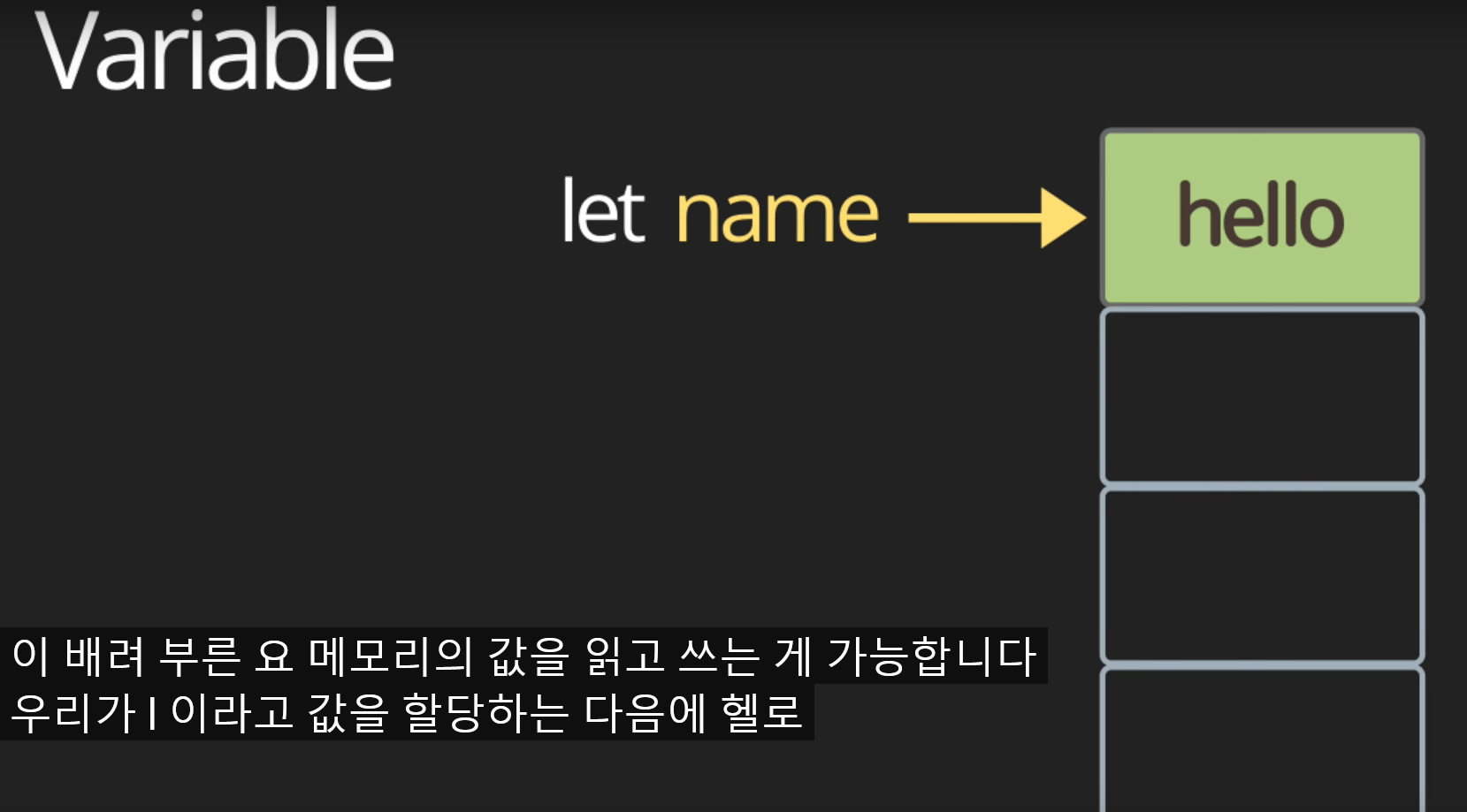 // 2.Variable == 변수 (변경될 수 있는 값), rw(read/write);