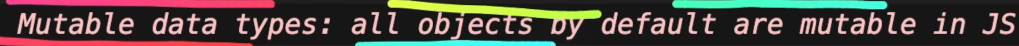 // Imutable data types: primitive types, frozen objects (i.e. object.freeze());