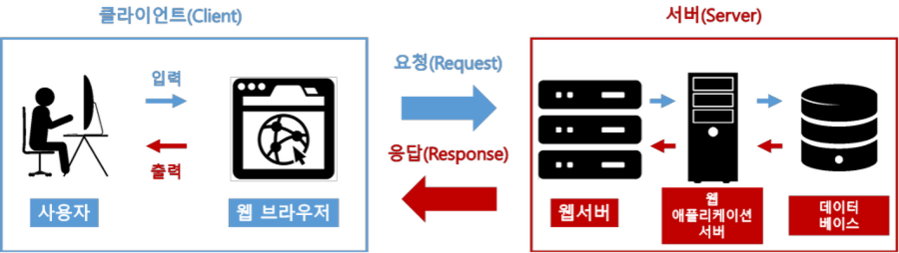 웹 브라우저가 웹 서버에 필요한 자원(웹 페이지)를 요청하면 서버는 응답하고 웹 브라우저는 이를 해석한 후