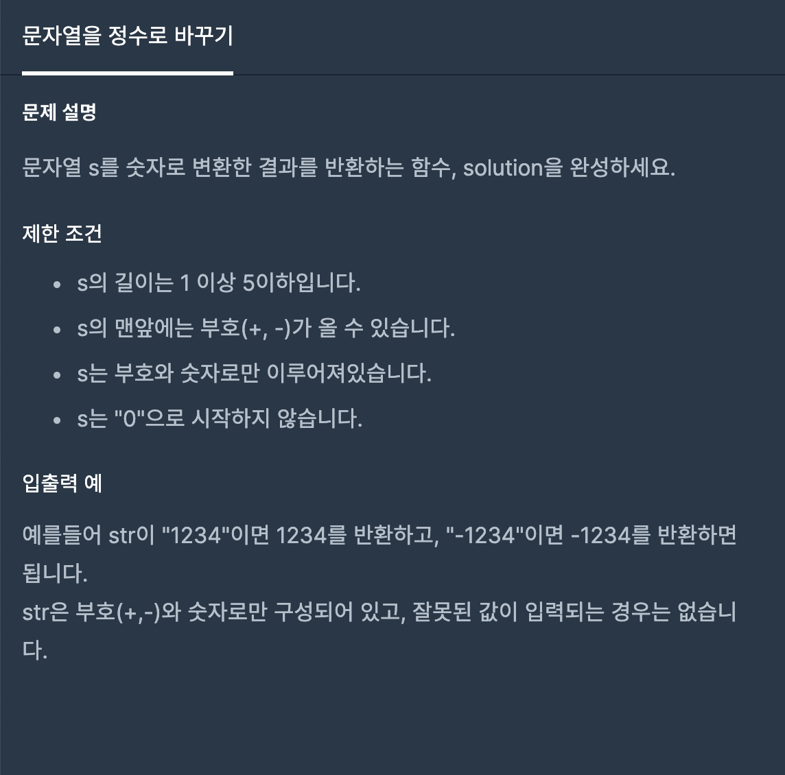 - 문자열 s를 숫자로 변환한 결과를 반환하는 함수, solution을 완성하세요.