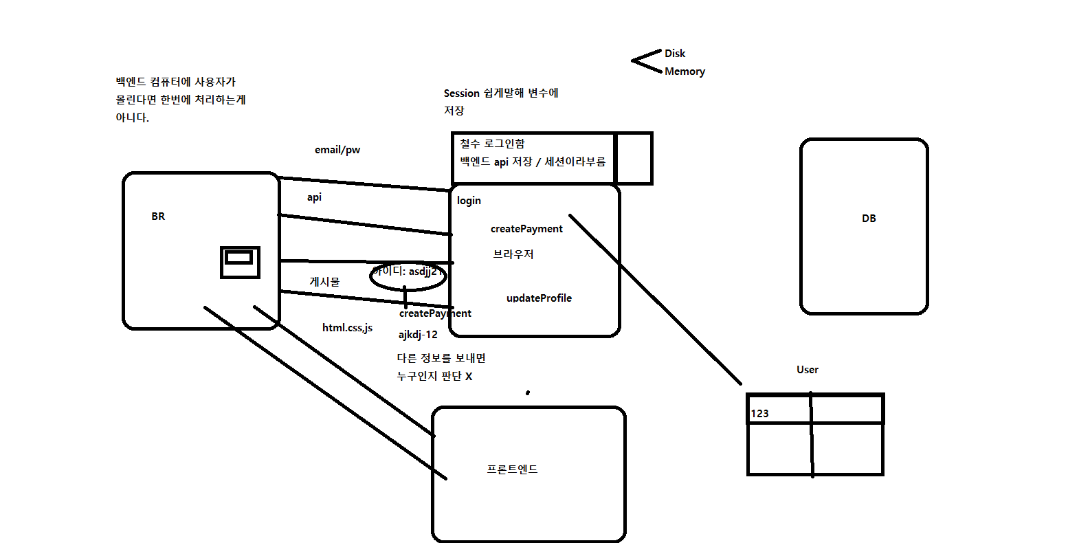 먼저 우리는 브라우저라는 하나의 웹에서 백엔드가 요청을 보내게 된다.