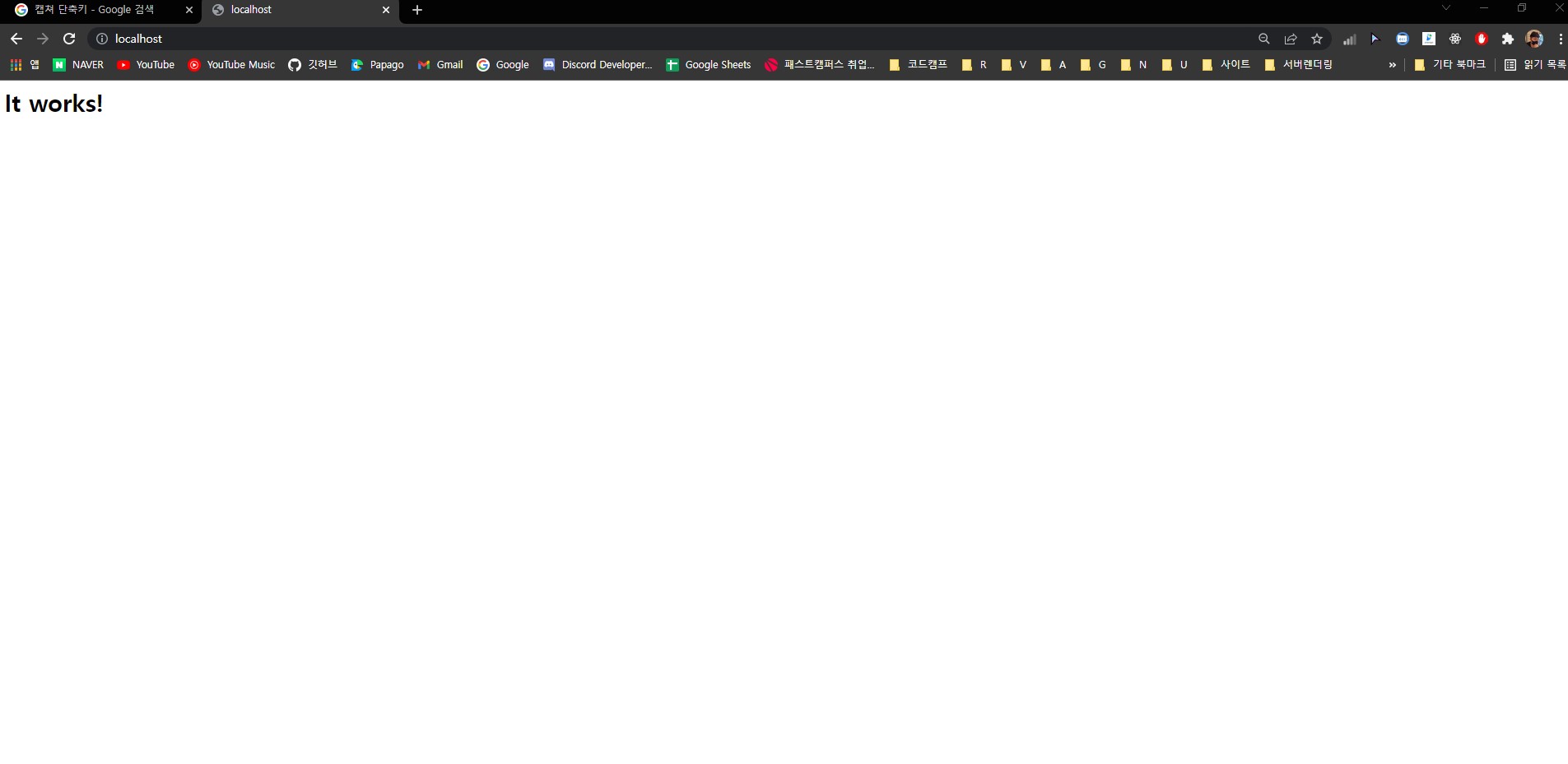http://localhost 또는 http://localhost:80/로 접속해 위 페이지까 뜨면 성공적으로 아파치 웹서버 설치가 완료되었습니다.
