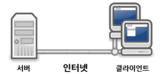 이러한 웹 시스템에는 다음 그림과 같은 클라이언트(client)와 서버(Server)로 구성됩니다.