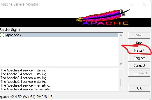 PHP를 세팅하려면 먼저 Apache 서버가 세팅되어야 합니다.