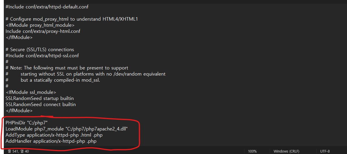 Apache24의 http.conf 파일에서 몇가지를 수정해야 합니다.