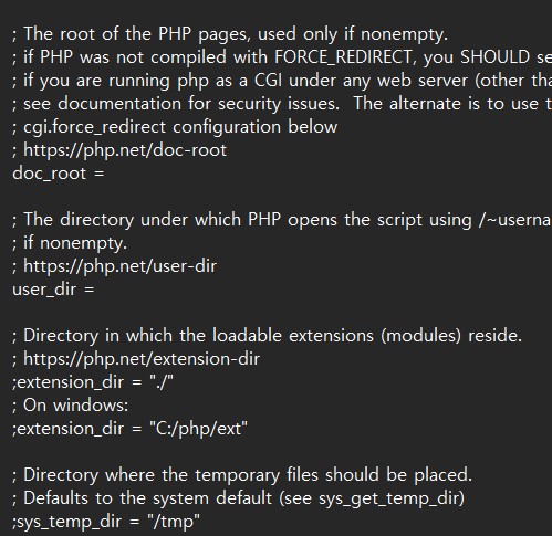 php.in-development의 extension_dir의 경로를 C:/php/ext로 변경하여 php.ini로 저장해줍니다.