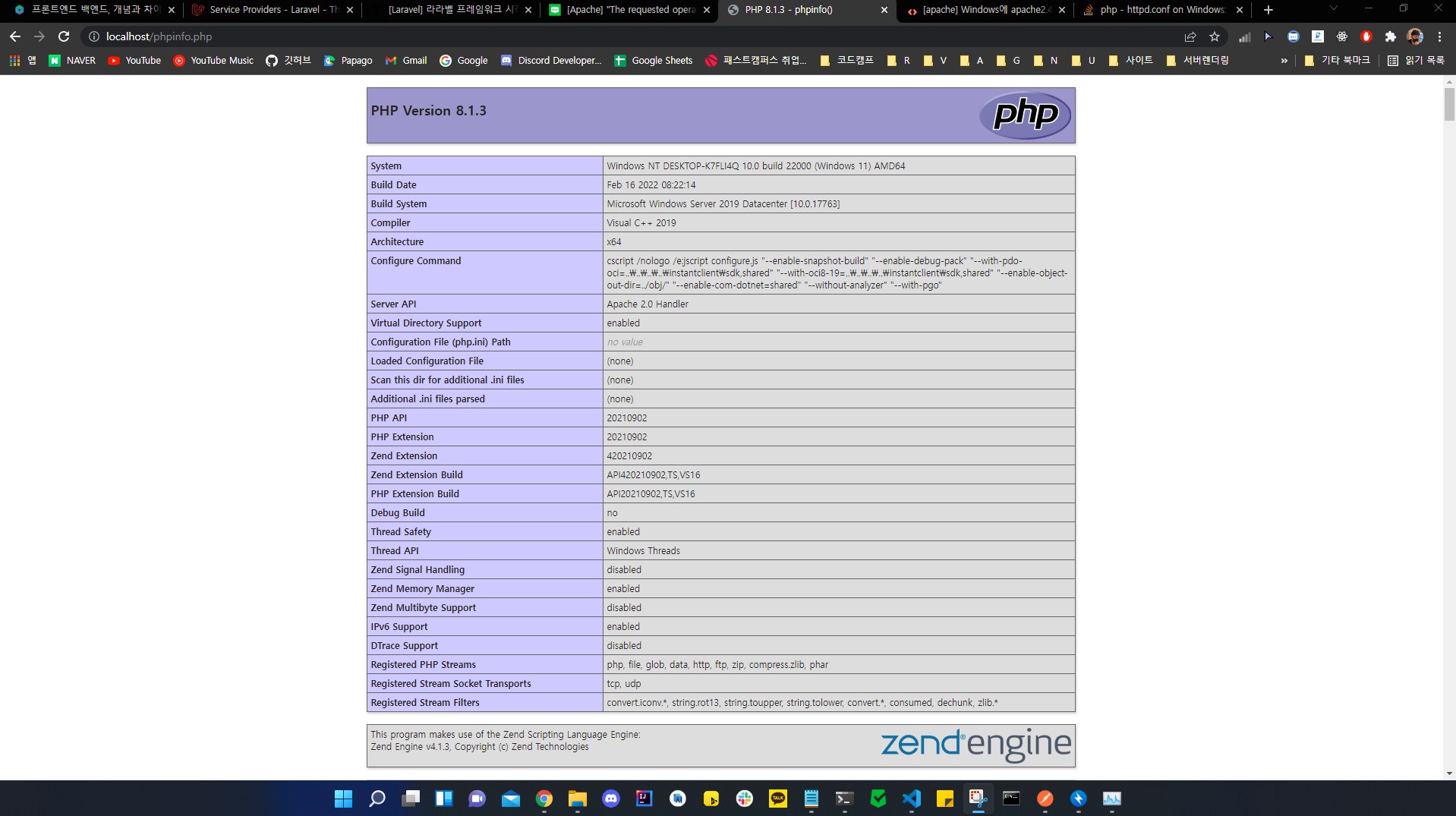 위 처럼 뜨면 php 세팅이 완료된 것 입니다.