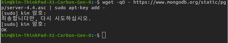 터미널에서 다음 명령어를 실행해 https://www.mongodb.org/static/pgp/server-4.4.asc 에서