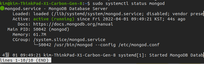 필요에 따라 다음 명령어를 사용해 MongoDB를 다시 시작할 수 있다.