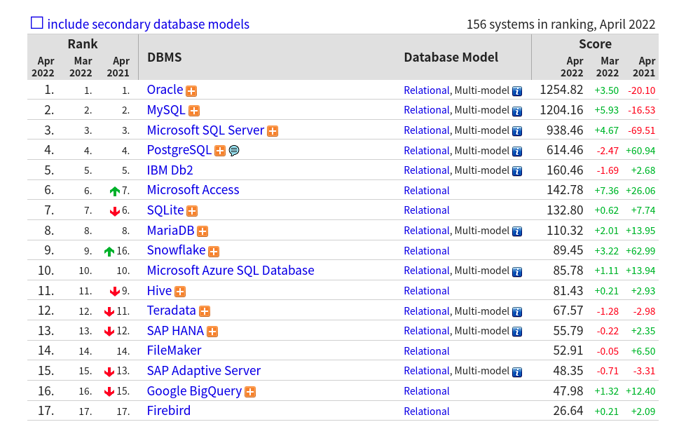 2022년을 기준으로 현재까지도 꾸준히 점유율을 유지하고 있는 DB입니다.