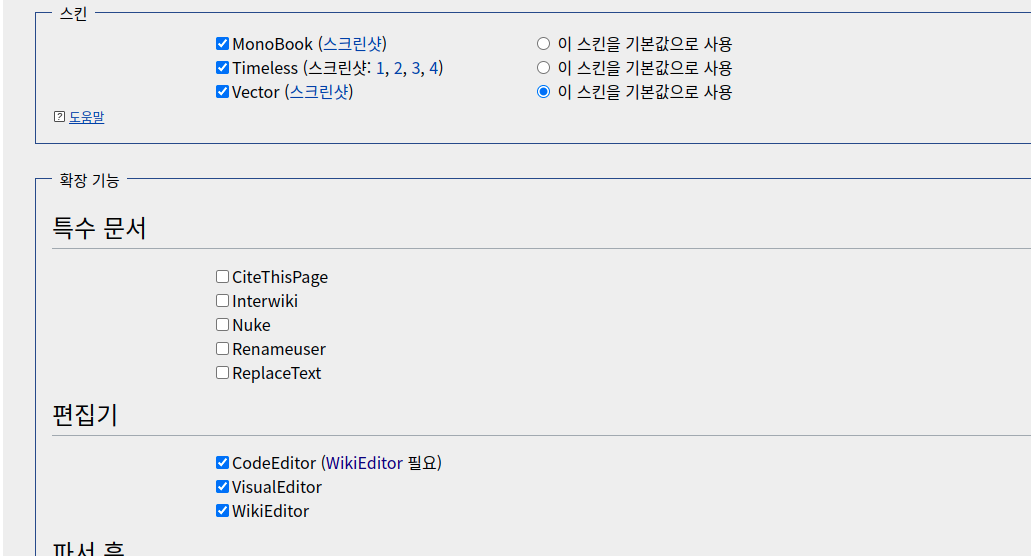 스킨과 편집기 등등을 선택해줄 수 있습니다.