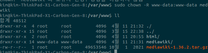 chown -R www-data:www-data mediawiki