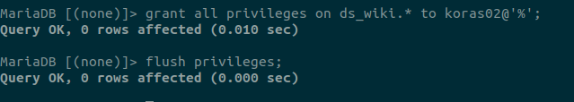 grant all privileges on ds_wiki.* to koras02@'%';
