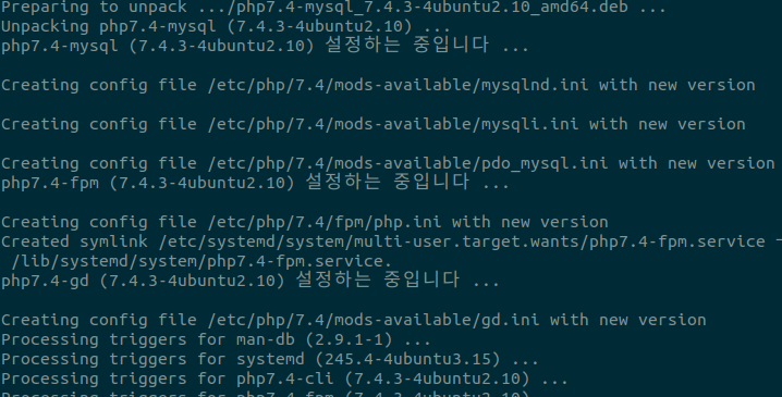 sudo apt install -y php7.4-fpm php7.4-gd php7.4-json php7.4-mysql