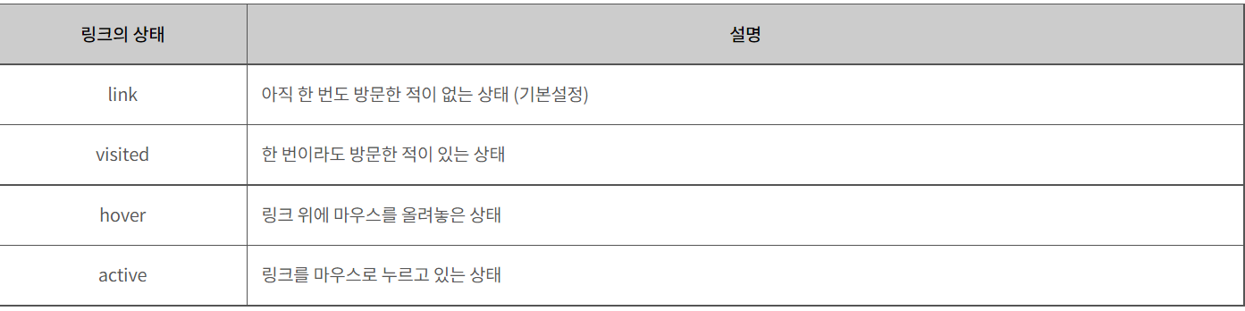 HTML 링크의 상태는 다음과 같이 네 가지로 구분됩니다.
