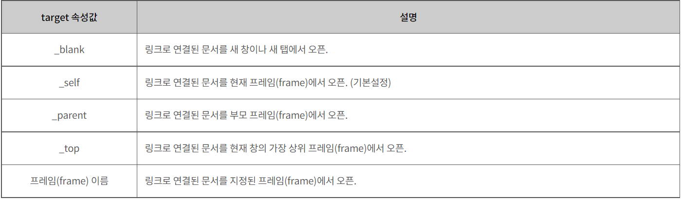<a>태그의 target 속성은 링크로 연결된 문서를