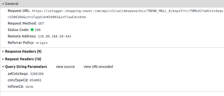 - General: 요청 url 정보와 메소드, 상태 코드를 확인할 수 있다.