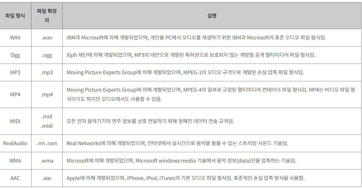 오디오 코덱으로는 ACC를 사용합니다.- 적은 용량으로도 고품질의 영상 및 음성을
