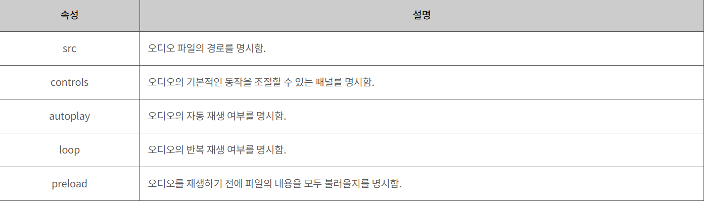 오디오를 삽입하는 표준화된 방식을 제공하고있습니다.