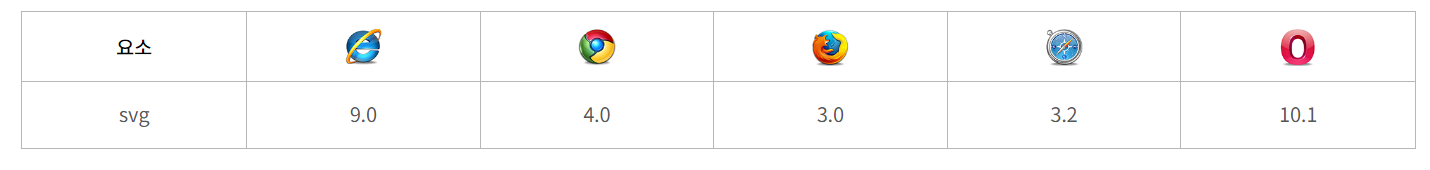 svg 요소를 지원하는 주요 웹 브라우저의 버전은 다음과 같습니다.