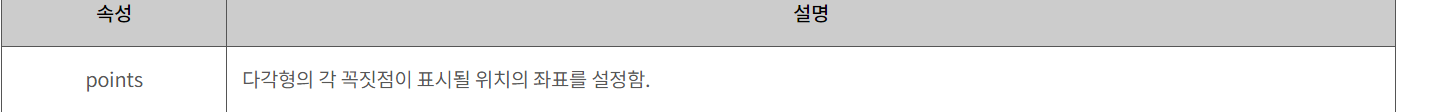 다각형을 그리는데 사용하는 polygon 요소의 속성은 다음과 같습니다.