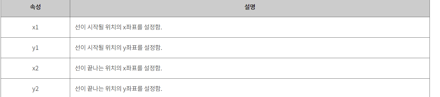 선을 그리는데 사용하는 line 요소의 속성을 다음과 같습니다.