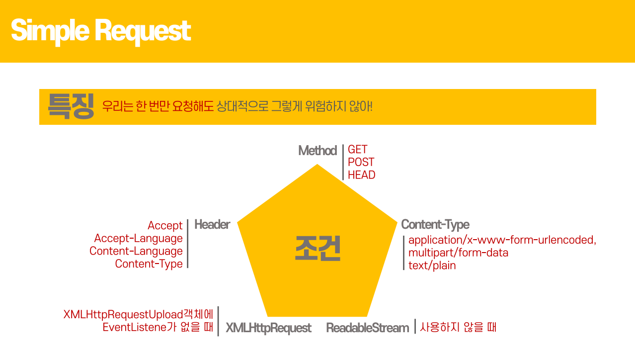 이때, 단순 요청 중 GET 메서드는 금지라고 한다!.