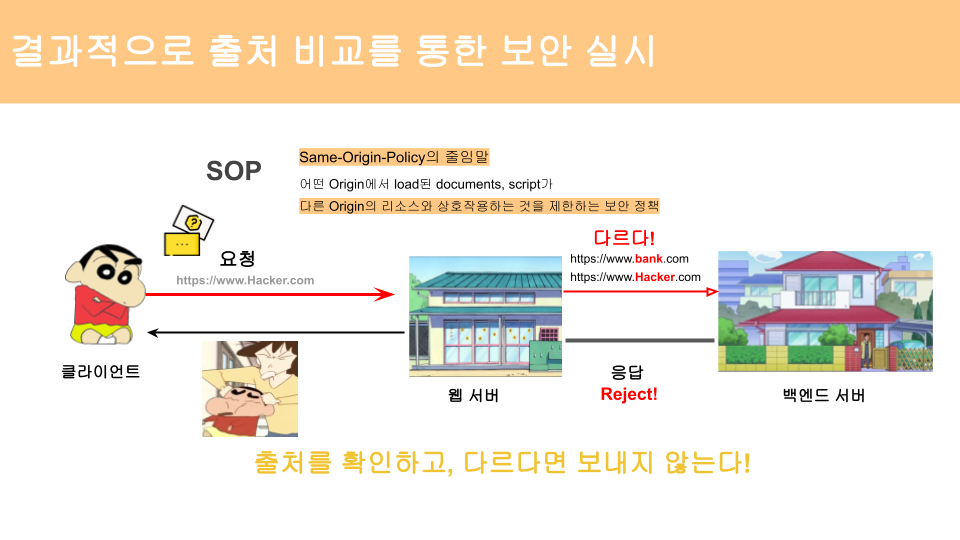 아무리 짱구가 사고를 친다 해도, SOP가 적용된다면, 이제 다른 출처로 인한 공격에 덜 치명적이게 됩니다.