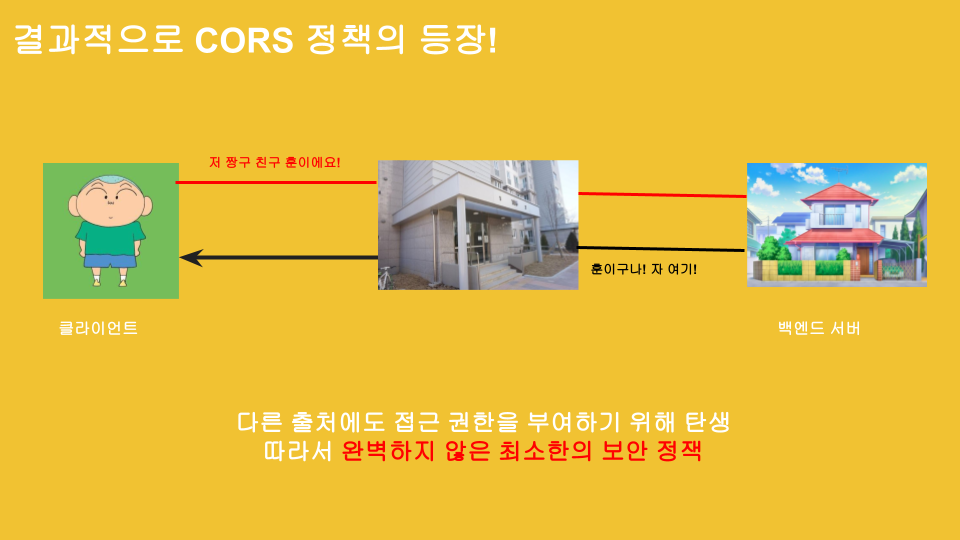 따라서 CORS라는 것이 생긴 것 입니다!