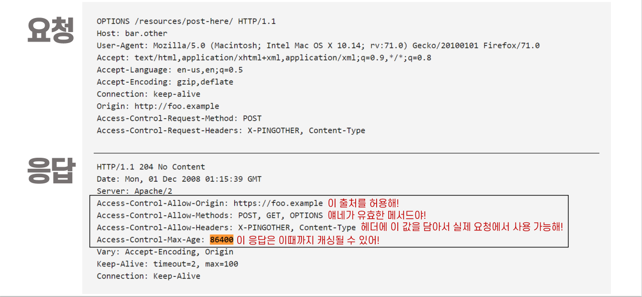 이렇게 2번 요청하는 사전 요청이 필요한 겁니다!