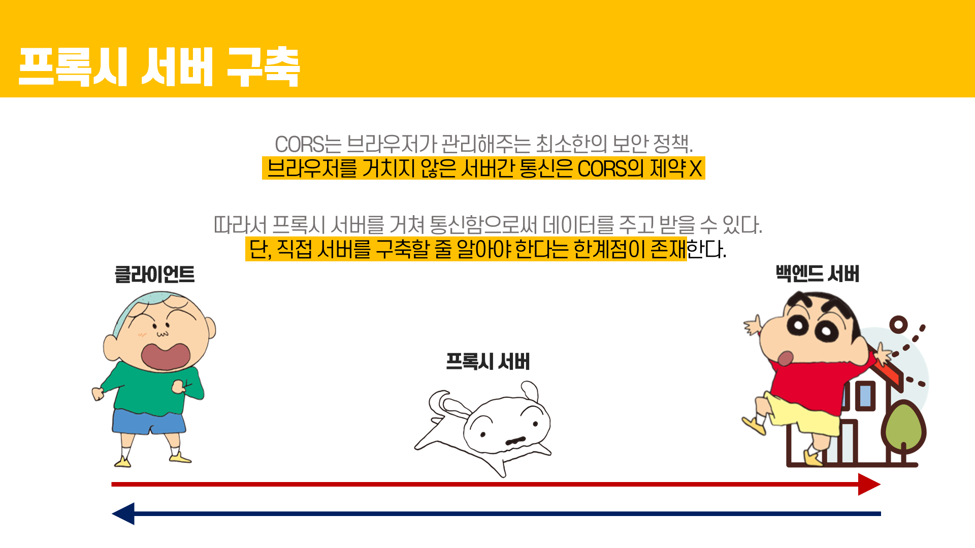 그럼에도 불구하고 문제가 발생한다면, 개발 환경에서 프록시 설정도 대안이 될 수 있다.