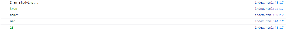 Person 객체의 맴버 함수 showInfo()는 아래 [코드 4]와 같이 호출할 수 있다. [코드 4]를 실행하면, 브라우저의 콘솔창에는 name1,man,25 가 출력되는 것을 볼 수 있을 것이다.